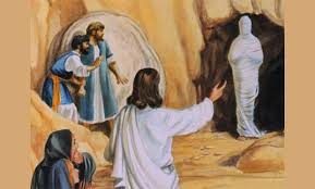 Иисус проявляет свою дружбу именно в этой ситуации смерти. Настоящие друзья проявляют себя в трудные моменты. Он сострадает и плачет о печальном положении своего друга (ср. Иов 1, 12), идет ему навстречу, его не пугают ни тьма, ни зловоние, окружающие его, он узнает его, зовет по имени, снимает с его лица покров, освобождает от уз, мешающих ему ходить, вводит в новую жизнь.