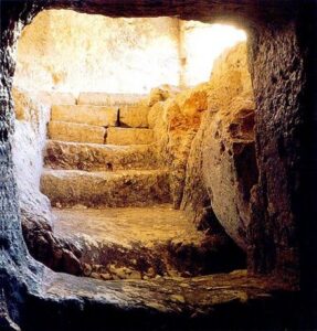 cuando estaba todavía oscuro, pero cuando ya ha empezado a amanecer: han quitado la losa, el